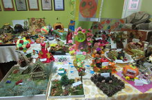 Осень - волшебная, красочная пора. Природа радует нас разноцветием своего убранства, богатым урожаем овощей и фруктов. Осенью у нас стал уже традиционным конкурс поделок детей и их родителей из природного материала "Волшебный сундучок Осени". Дети и родители отдохнули за лето и теперь с новыми силами воплощают свои замыслы и фантазию в необычной красоты поделках. В ход идут и овощи, и фрукты, и фантастической формы коряги, найденные в лесу во время прогулок и другой природный материал. Поделки получились разнообразные.