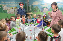 Всегда желанными являются встречи детей с инспектором ГИБДД. Вот и сегодня, в нашем детском саду состоялась такая встреча детей группы "Лучики" (воспитатель Сибгатулина Г.М.) с инспектором (студент ЛМХПК) , который провел тематическую беседу на тему "Правила безопасного поведения детей на дорогах и улицах города".Это была яркая беседа с показом мультфильма и обыгрыванием дорожно-транспортных ситуаций. В беседе дети рассказали о том, как они ездили на велосипеде, какой транспорт в нашем городе и как нужно вести себя на улице, особенно при переходе проезжей части дороги. Дети активно отвечали на вопросы инспектора, а так же играли в познавательную игру «Светофор» в кабинете ПДД с использованием игрового макета , чем очень порадовали инспектора. Встреча прошла познавательно и интересно для дошколят. Дети имели возможность еще раз повторить правила поведения на дорогах, поделиться впечатлениями и знаниями, услышать новое от инспектора. -