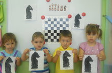 Малыши 1 младшей группы (воспитатель Гирфанова Е.А.) в рамках недели, посвящённой Дню шахмат, совершили путешествие по Шахматной стране. Они познакомились с шахматными фигурами, рассмотрели как они выглядят, как располагаются на специальной шахматной доске. А потом старательно раскрашивали - превращали белые фигуры в чёрные.Зовется Шахматной странойДвухцветная страна,