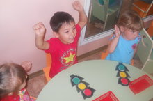 В рамках недели "Правила дорожные знать каждому положено", малыши 1 мл.(воспитатель Гирфанова Е.А.) и 2 мл. группы( Галимова Г.М.) побывали на познавательном празднике, посвящённом правилам дорожного движения. На удивление постового полицейского Дяди Стёпы дети дружно, а самое главное правильно отвечали на все сложные вопросы о том, где можно играть на улице, можно ли малышам без взрослых переходить дорогу, что означают цвета светофора. С удовольствием дети приняли участие в игре "Автомобили и пешеходы", отгадывали загадки, танцевали и внимательно слушали Дядю Стёпу, когда он рассказывал как правильно вести себя на дороге. А с каким увлечением все принялись собирать макеты светофоров - дети младшего дошкольного возраста показали отличные знания по цветовым характеристикам светофора. А это значит, что уже с младшего возраста воспитатели привили осознанное отношение к безопасности на дороге.
