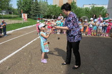 Все воспитанники детского сада собрались на торжественную линейку, посвящённую выпуску детй подготовительной к школе группы. Слова поздравления ребята услышали от малышей, педагогов. А заведующая ДОУ Ахметшина Н.М. вручила каждому выпускнику свидетельство об окончании детского сада и присвоила звание "Выпускник -2015". В ответ будущие первоклассники вручили ребятам, которые перейдут в этом году в подготовительную к школе группу, Ключ Знаний с условием всегда быть примером для малышей. В торжественной обстановке выпускникам вручили портфолио работ по художественно-эстетической деятельности.