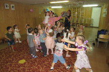 Наш детский сад, откликаясь на социальный заказ родителей воспитанников, вводит новую услугу "День рождения" в детском саду. Сегодня именинника в одной из групп пришли поздравить Микки Маус и клоун Клёпа. Забавные герои организовали ребёнку грандиозный праздник! Весёлые танцы, игры, подарки, скачки на фитбольных мячах, шоу мыльных пузырей - сделало этот день незабываемым для малыша и его родителей.