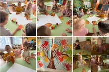 Дети узнали об осени, ее характерных признаках через ситуативные беседы и наблюдения, разучивали песни. И хоть осень и называют «унылой порой», тем не менее, кто как не дети больше всего радуется ярким разноцветным листьям, опавшим с деревьев. Вот и ребята с удовольствием украшали осеннее дерево разноцветными листьями, используя нетрадиционные методы рисования - ладошки. -