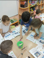 Вместе с учёным Асылташем, ребята пилотной группы "Радуга", проверили свою зрительную память и нашли на картинке все предметы мальчика эксперементатора. Помогли Асылташу найти путь к пробиркам. Провели эксперимент с водой и предметами из различных материалов, закрепив свои знания о свойствах.#ДвижениеПервых