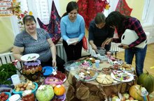 В нашем детском саду уже стало ежегодной традицией проведение осенней ярмарки, в которой принимают участие все возрастные группы и родители. Ярмарка проходит шумно и весело: с песнями и плясками. Родители - продавцы переодеваются в нарядные сарафаны и косынки, каждая группа придумывает название своего "хозяйства". Спасибо всем родителям, которые не остались равнодушными: напекли пирогов, блинов, настряпали пирожное. Также наши мамы насолили вкуснейших огурцов, наварили варенье и приготовили лечо. Конечно же не обошлось и без овощей выращенных на своих огородах: тыква, кабачок, свекла, морковь, картофель, лук и др. Молодцы, родители, надеемся, что в следующем году будет ещё больше желающих принять участие в осенней ярмарке!