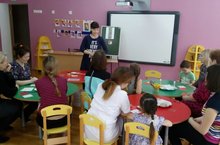 Педагогом ДОУ Г.Х.Аглиевой показано открытое занятие по обучению родному языку в подготовительной к школе группе "Утка ищет друзей". ООД тщательно продумано, проведено с использованием игровых технологий и широких возможностей интерактивной доски. Воспитатель применила в занятии различные приемы мотивации, активного участия дошкольников на протяжении всей деятельности. Ребята с большим интересом вместе с воспитателем по обучению татарскому языку совершили путешествие в поисках друзей для Утки, используя карту. Воспитанники показали хорошие знания по программе "Говорим на родном языке".