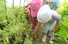 В летний период педагогами достаточное внимание уделяется развитию у воспитанников познавательных интересов. С детьми организуются исследовательская деятельность, работа по экологическому воспитанию. Ребята со взрослыми выращивают в теплице томаты, перцы, кабачки, огурцы. Урожай у нас неплох!