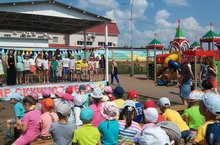 28 июля воспитанники старших групп были приглашены на закрытие смены дворового лагеря "Пингвины". Бесплатный лагерь работал для школьников под руководством ТОС-13 в новом микрорайоне города-микрорайоне нефтяников. Школьники выступили перед ребятами-дошколятами с концертом, провели совместные игры, руководство ТОС-13 угостило всех присутствующих лимонадом и печеньем. Лето продолжается!