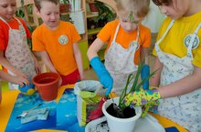 Җирне ярату ул - матурлыкка соклану, аны саклау гына түгел, ә табигатебезнең байлыгын арттыру да. 22 апрельдә билгеләп үтелә торган Җир көне алдыннан балалар үсемлекләрне күчереп утырту белән шөгыльләнде. Балалар беләлә: без планетабыз өчен никадәр яхшылык эшләсәк, ул кешеләргә шулкадәр күбрәк җимеш бирәчәк. Бу игелекле акциянең дәвамы итеп, балалар бакчасы участогында күпьеллык үсемлекләр утырту булачак.
