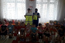 В рамках месячника по безопасности в группе «Солнышко» была проведена встреча с инспектором по БДД по г. Лениногорск Зульфией Мударисовной Рахмановой. В ходе беседы с инспектором дети повторили правила безопасного поведения на дороге. Наступила осенняя пора, когда стало рано темнеть на улице и, в связи с этим, уже сейчас необходимо задумываться как обезопасить ребенка при передвижении по улицам и дворам города. Инспектор разъяснила детям значимость световозвращающих элементов для сохранения жизни, правила расположения их на одежде, рюкзаках. Так же дети ознакомились с защитным светоотражающим жилетом, который тоже является необходимым атрибутом для передвижения по дорогам города, если дети отправляются на экскурсию. Встречей с инспектором дети остались очень довольны и запомнили много полезного и интересного.