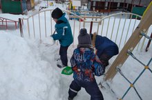 С удовольствием чистили снег на участке, помогали друг другу. -