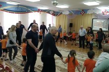 Сегодня, 19 февраля 2020 года, в рамках закрытия долгосрочного проекта "Чтобы сильным стать сполна, физкультура нам нужна" для пап и дедушек старшей группы "Фантазёры" прошел музыкально-спортивный праздник, посвященный 23 февраля. Воспитанники вместе с родителями оказались в своем любимом мультфильме "Маша и медведь". Показали Маше, что быть мужчиной непросто: нужно и зарядку по утрам делать, играть в футбол, уметь конструировать самолет и быстро одевать военную форму. В конце мероприятия были подведены итоги проекта: ребята были очень удивлены, увидев фильм с их участием. Все воспитанники, принявшие участие в проекте были награждены грамотами за участие.