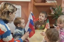 Воспитатель Братенькина Е.В. провела беседу на тему "Наша Родина - Россия!" с воспитанниками группы раннего возраста.