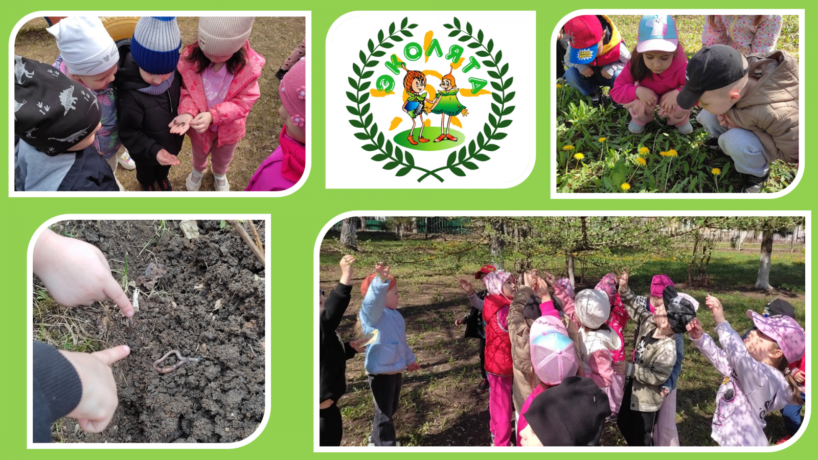 В рамках Всероссийского «Дня Эколят» воспитатель средней группы №2 Хуснутдинова Л.Н. организовала экологическое путешествие со своими воспитанниками «Познаем природу с Эколятами». Путешествие прошло на зеленой поляне детского сада. Здесь дети закрепили свои знания: о весенних цветах, пчелах, насекомых, которые они встретили на поляне. Ребята наблюдали за их жизнью, но так, чтобы не мешать им. Наблюдения в природе бывают случайными и неожиданными, как встреча с червяками. Ребята так же поздоровались с нашей любимой лиственницей, которая распускает свои иголочки – листочки. В процессе ознакомления с природой следует у детей формировать эстетическое отношение к окружающему миру; учить видеть изменения в природе, делать элементарные умозаключения, делиться полученными впечатлениями, отражать свои впечатления в продуктивных видах деятельности и применять знания на практике. Необходимо уточнять и обогащать представления детей о многообразии растительного и животного мира и учить беречь природу.