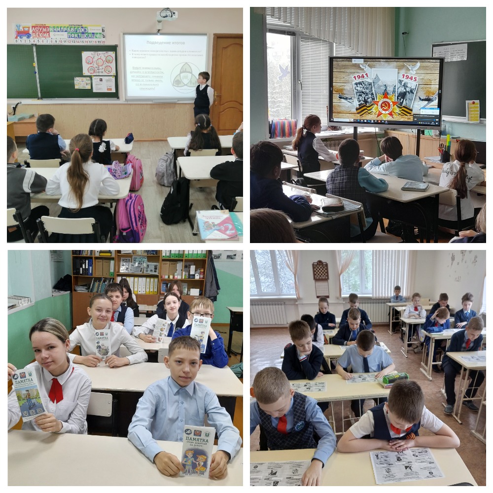 30.04.2025 года в 8 А классе был проведен Всероссийский урок безопасности и защиты Родины,во время которого ребята вспомнили правила соблюдения противопожарной и противовоздушной безопасности в случае террористической атаки БПЛА, план и адрес эвакуации.