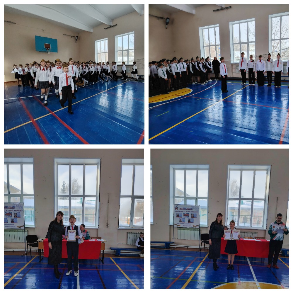 Завершился Смотр строя и песни, посвящённый Дню защитника Отечества и 80-летию Победы в Великой Отечественной войне. Во второй день участвовали учащиеся 8,9,10 -х классов.