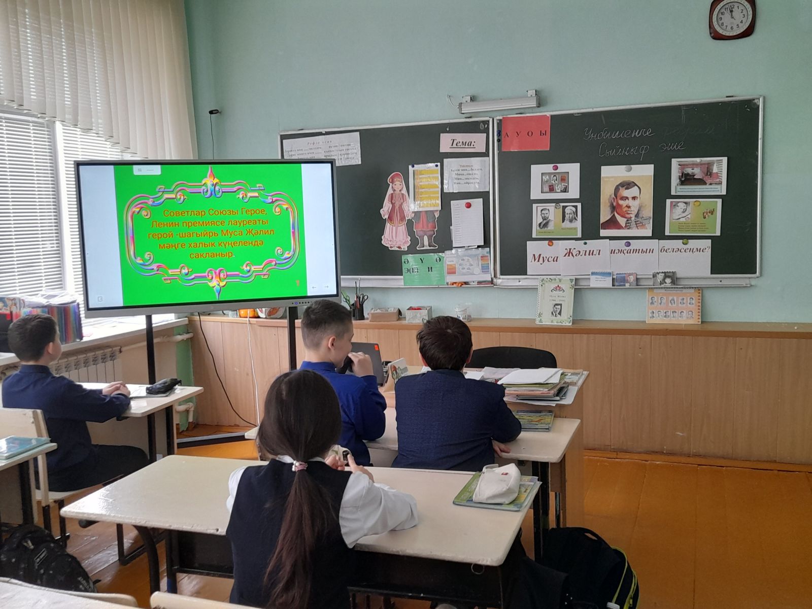 Шул уңайдан укучылар татар теле һәм әдәбияты дәресләрендә Муса Җәлилнең тормыш юлын һәм иҗатын искә төшерделәр, аның балалар өчен язган шигырьләрен укыдылар, аның әсәрләренә рәсемнәр ясадылар, герой-шагыйрьнең үлмәс шигырьләрен аудиоязмадан тыңладылар .