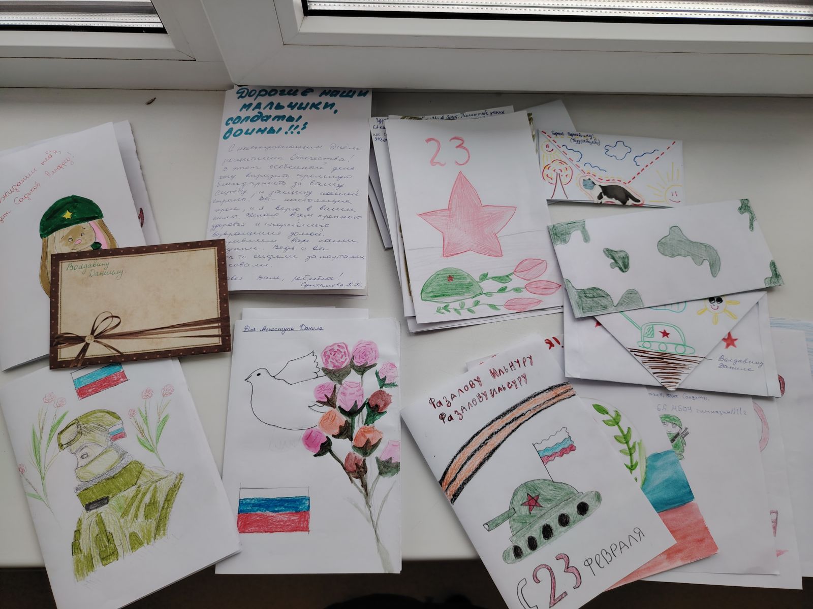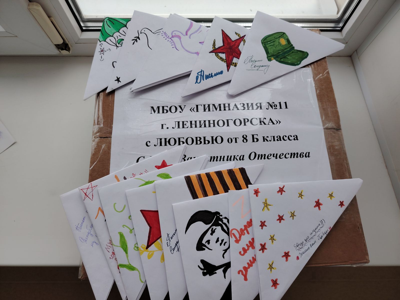 В рамках месячника оборонно-массовой работы 13 февраля 2025 года, учащиеся Гимназии №11 приняли активное участие в Акции «Письмо солдату». Ребята написали письма , изготовили открытки, приготовили гостинцы солдатам СВО и солдатам служащим по призыву- выпускникам Гимназии.