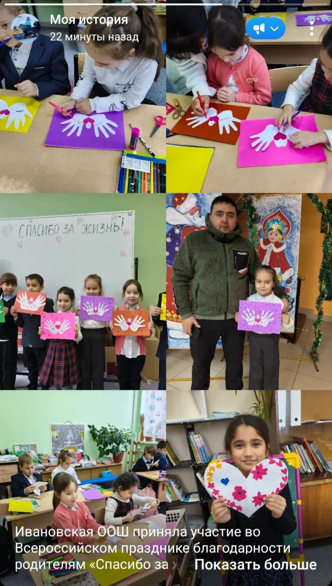 22 декабря 2025 года учащиеся Ивановской основной общеобразовательной школы присоединились ко всероссийскому мероприятию «Спасибо за жизнь», посвящённому выражению искренней признательности и любви своим родителям.