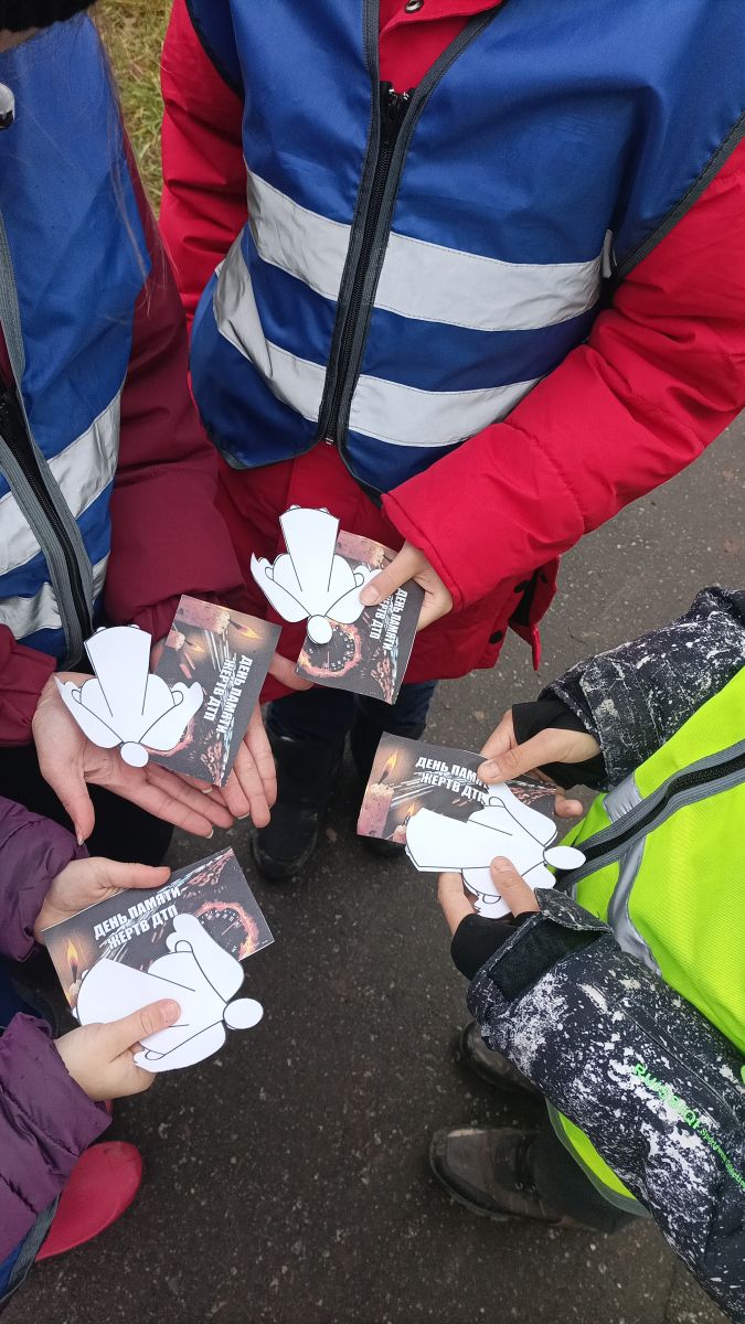 Школьники из отряда ЮИД «Форсаж» совместно с руководителем отряда напомнили водителям о важности соблюдения правил дорожного движения и раздали бумажных ангелов, как символ памяти жертв автокатастроф.