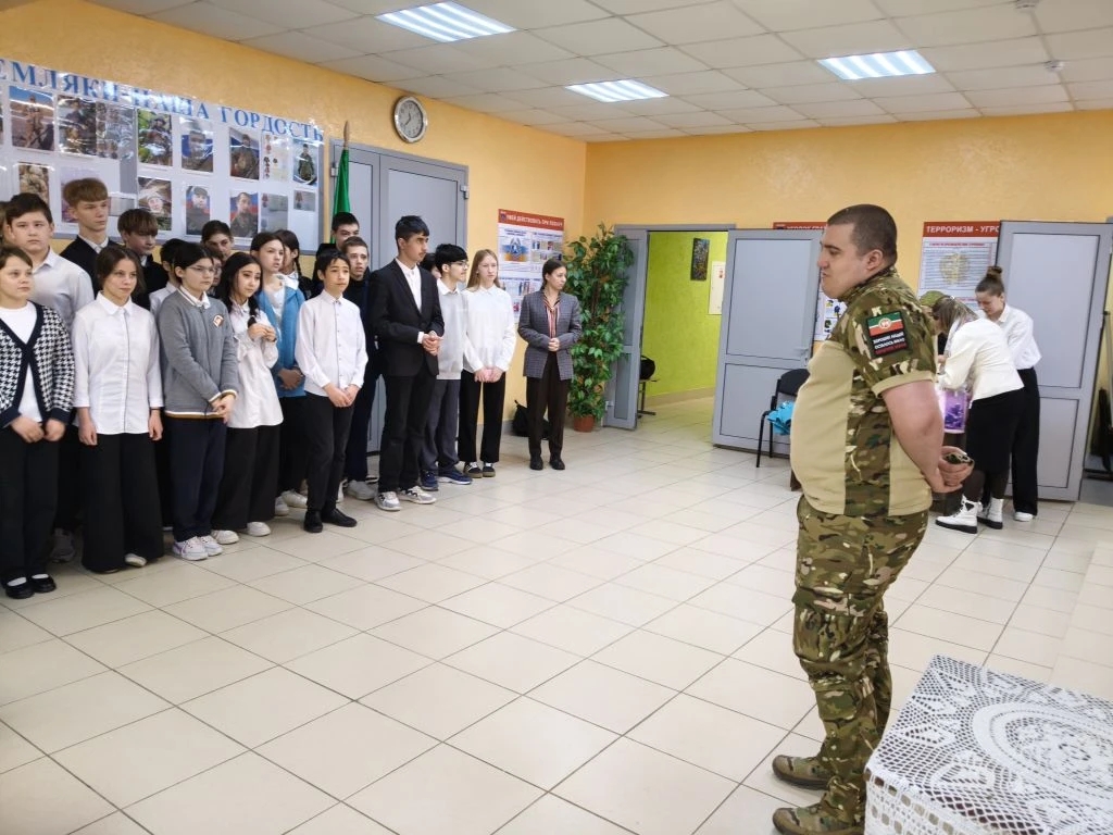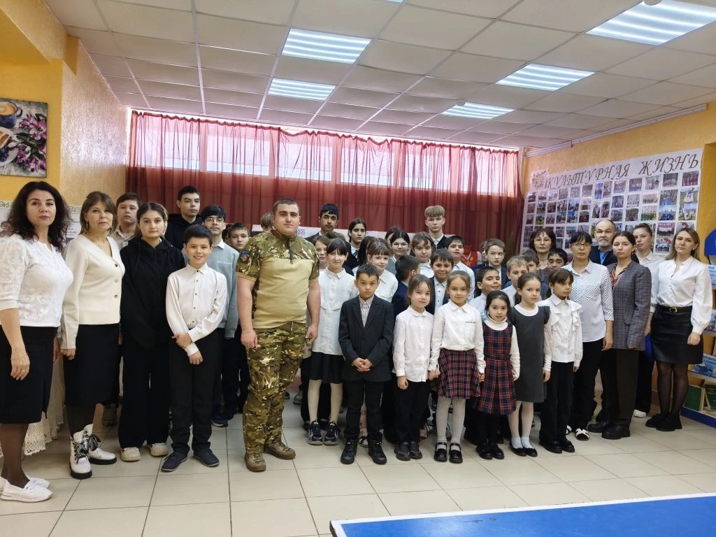 Сегодня нашу школу посетил наш выпускник Макаров Азамат, участник специальной военной операции, который пришел в отпуск.