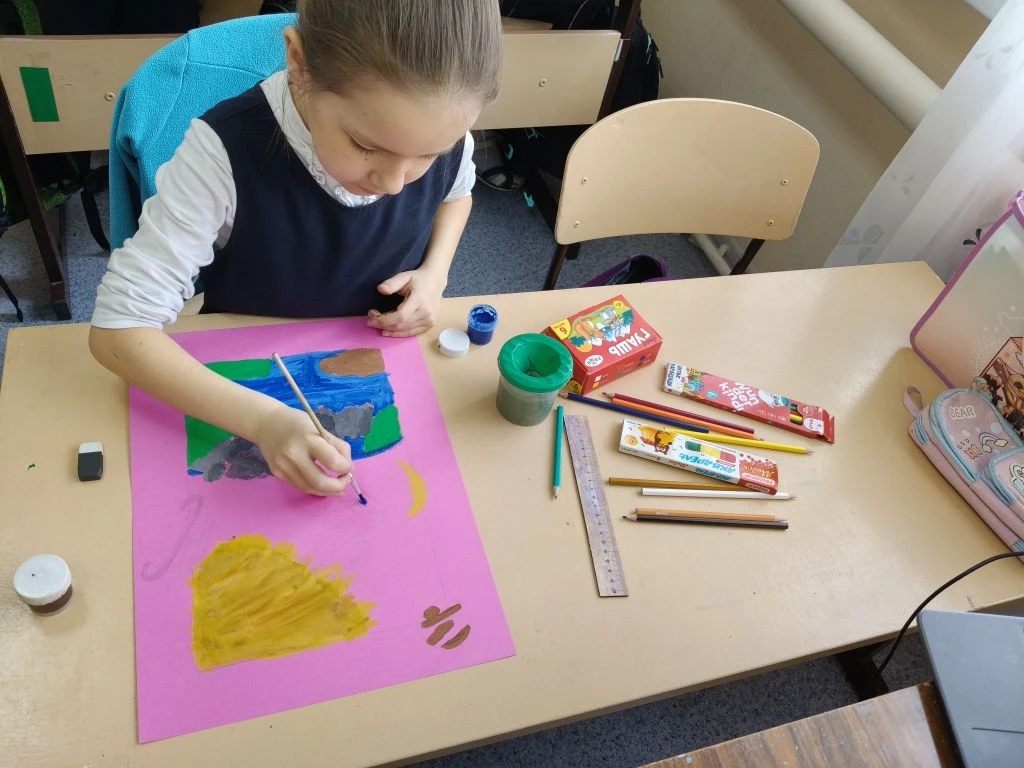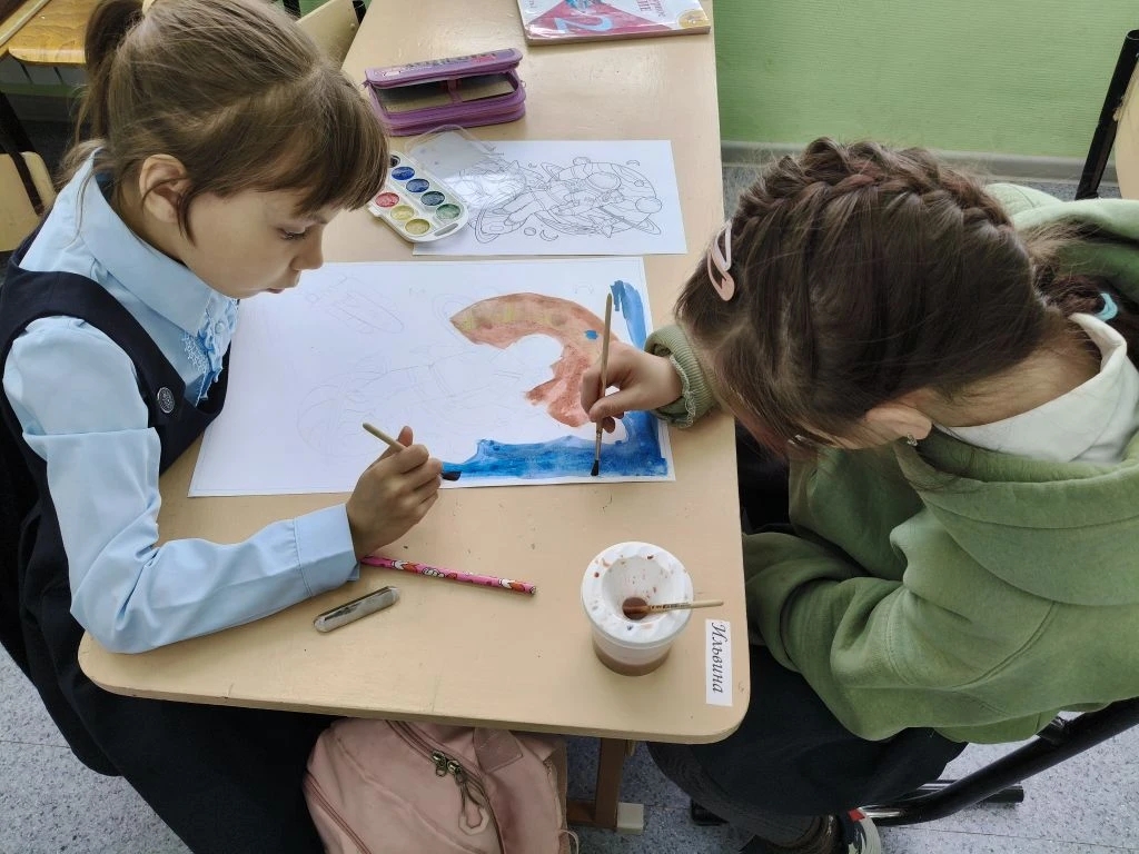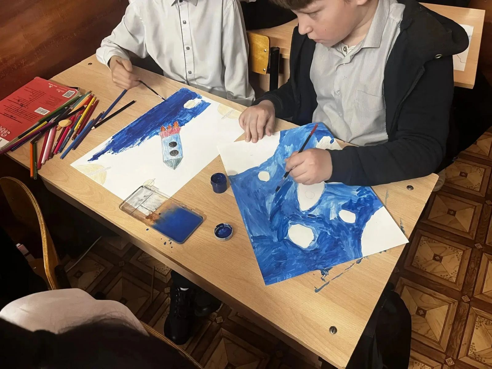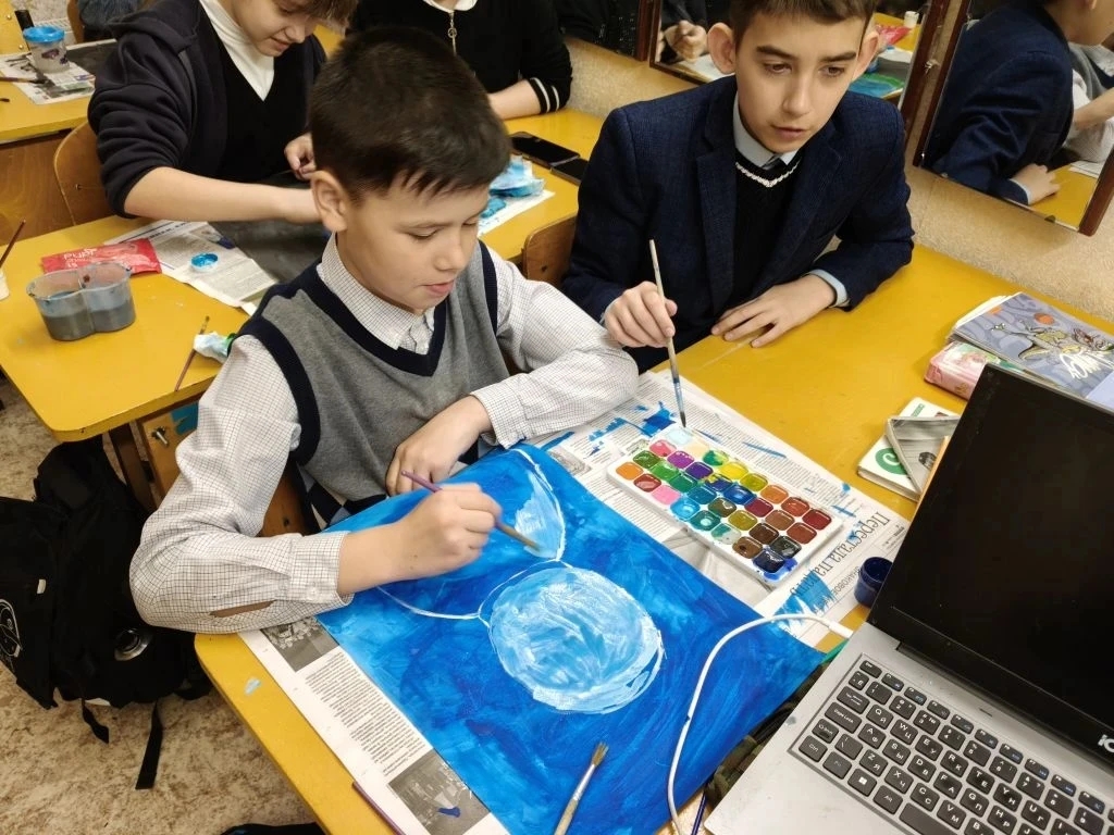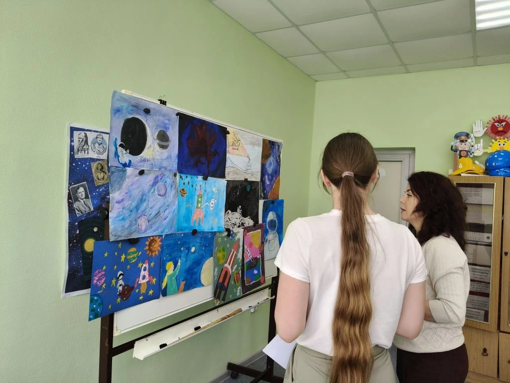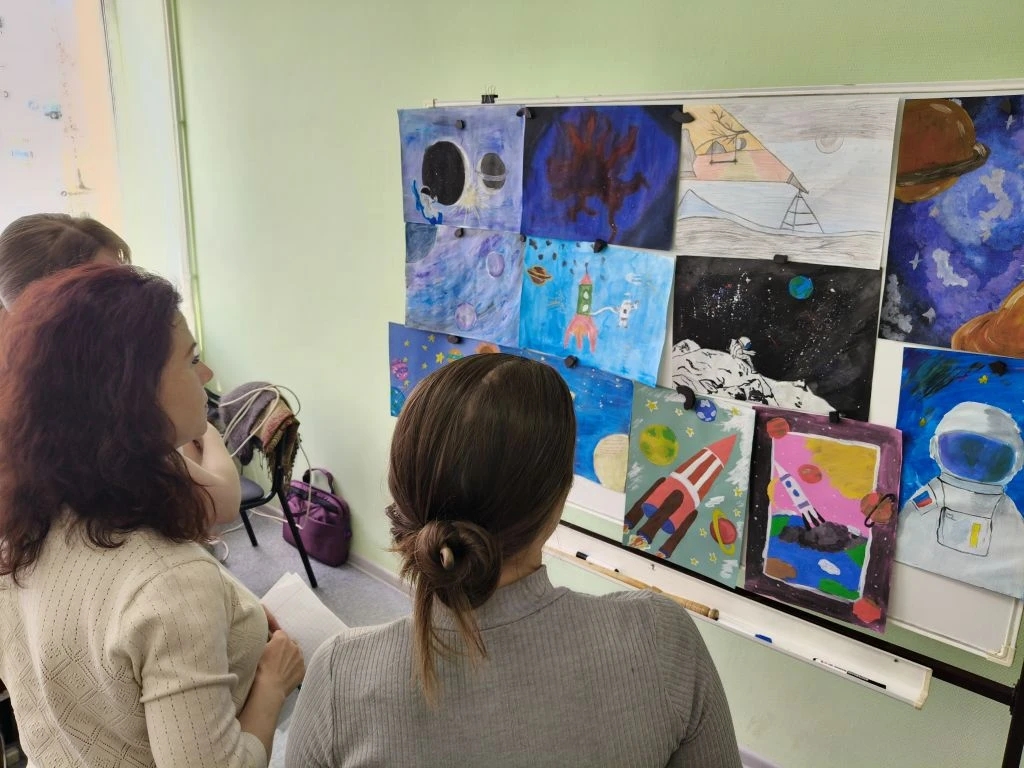 В заключение классного часа школьники решили подготовить свои рисунки на конкурс о космосе. Ученики проявили фантазию и создали замечательные творческие работы, наполненные мечтами о звёздах.