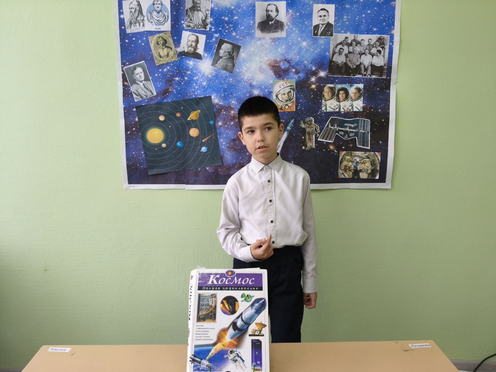В своём выступлении ученик рассказал о своей любимой книге, посвящённой космосу, а также познакомил слушателей с выдающимися деятелями астрономии и создателями космических аппаратов. В его рассказе прозвучали имена великих учёных и инженеров — от Николая Коперника до Сергея Королёва, чьи открытия и изобретения открыли человечеству дорогу к звёздам.????????????????