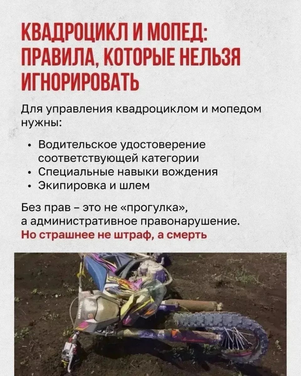 Питбайки — не игрушка для дорог. Если подростка остановят на мини-мотоцикле на улице, штраф получат родители: до 30 000 рублей за передачу управления.