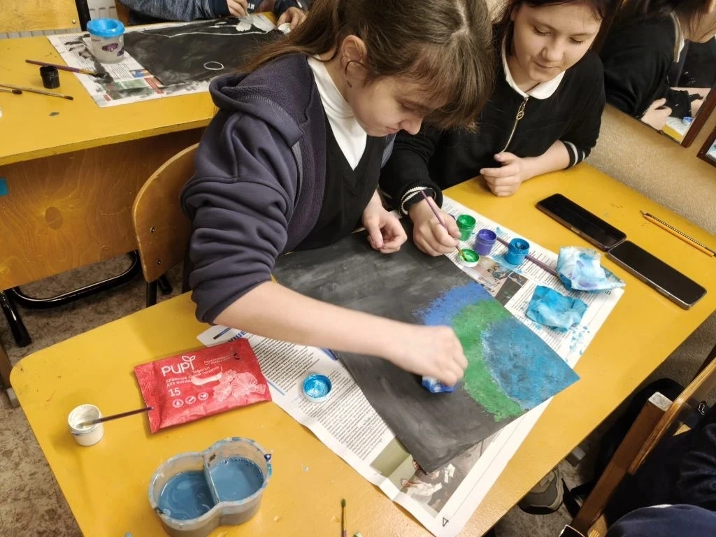 Сегодня в 5 классе прошёл урок изобразительного искусства, посвящённый Дню космонавтики. Учитель Мария Николаевна провела для ребят увлекательный мастер-класс «Космический талисман». Ученики с большим энтузиазмом выполняли задания, проявляя фантазию и старание.????????????