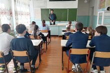 МЧС бүлеге җитәкчесе Гафиятуллин Р.Р. укучылар белән язгы пожар куркынычсызлыгы турында әңгәмә һәм өйрәнчек эвакуация үткәрде.