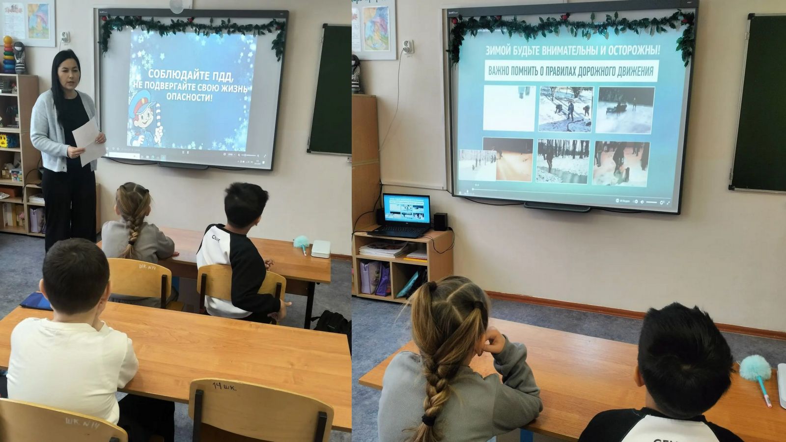 В целях повышения безопасности детей на дороге в зимний период 26 декабря в 1 классе прошло занятие по ПДД "Дорожная безопасность в зимний период". Учитель напомнила детям основные правила дорожного движения. В первую очередь внимание детей было обращено на осторожность при переходе дороги, особенно во время сложных погодных условий, повторили правила поведения на зимней дороге, где безопасно кататься на санках, играть в снежки, как вести себя вблизи проезжей части, а также напомнила о важности использования светоотражающих элементов на верхней одежде и рассказала, как они помогут защитить жизнь маленького пешехода в темноте.