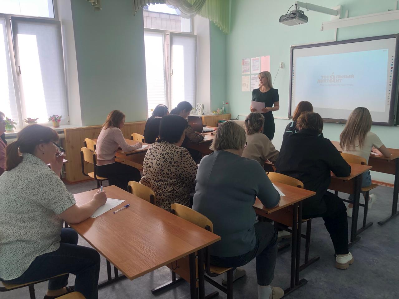 05 апреля 2025 года в 14:00 базе нашей школы состоялось проведение Международной просветительской акции «Тотальный диктант». В рамках Акции у всех желающих была возможность написания диктанта по русскому языку и проверки своей грамотности. Основной задачей Акции является создание информационной среды, национального формирования культуры знаний, а также привлечение молодёжи и населения в целом к вопросу повышения грамотности, а также популяризации русского языка. В Акции приняло участие 12 желающих.