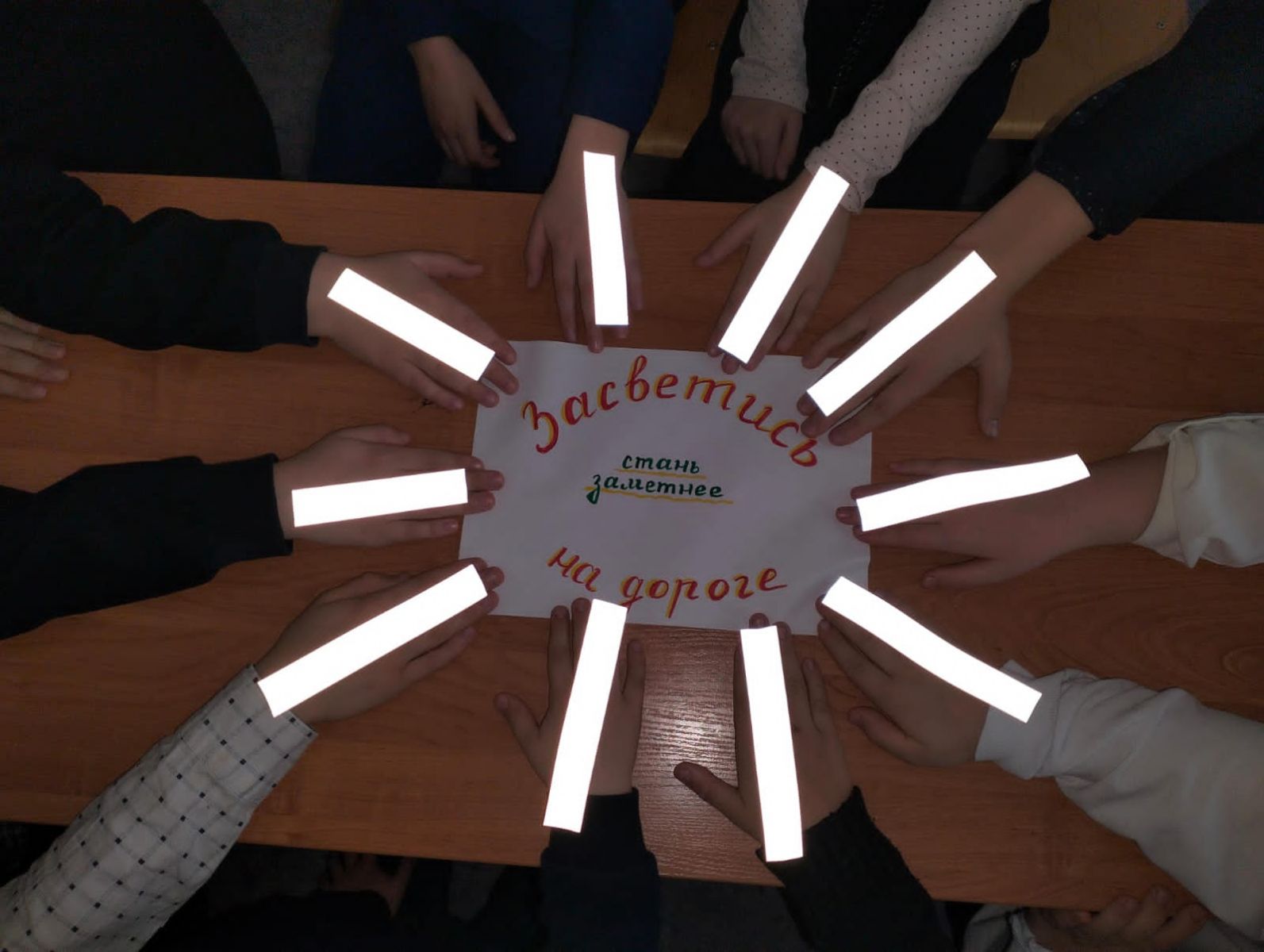 Учащиеся 4 класса приняли участие в акции под названием "Засветись!" Цель акции — напомнить школьникам о правилах дорожного движения и призвать детей и родителей использовать светоотражающие элементы (фликеры) на одежде в качестве «маячков безопасности».