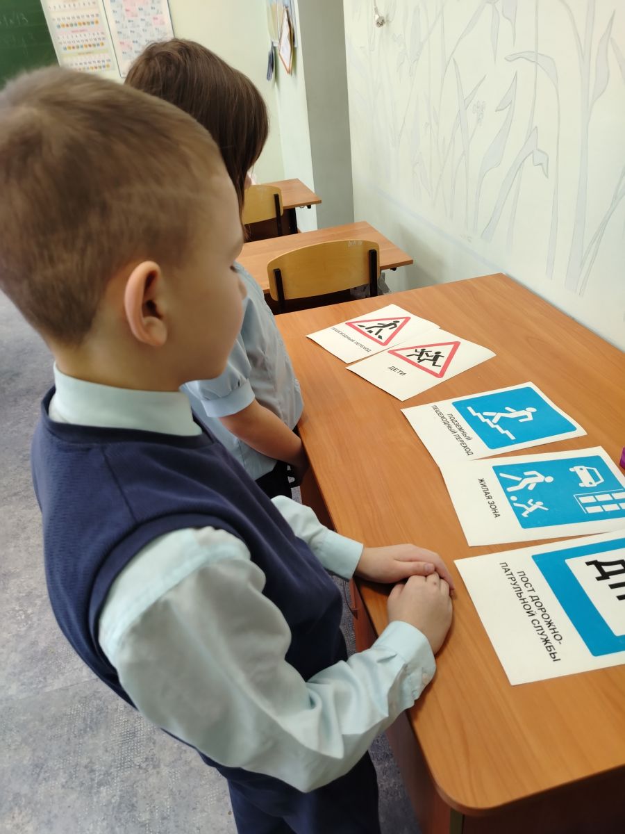 Классный руководитель 1 класса Шамсутдинова Н.Р. закрепила знания учащихся по правилам дорожного движения, расширила кругозор учащихся по ПДД и обеспечению безопасности жизни; совместно с детьми были проанализированы ситуации на дорогах, которые ведут к детскому травматизму, повторили умение различать не только знаки светофора, но и сигналы регулировщика.