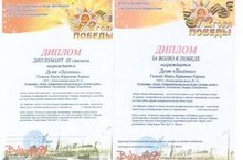 Дует «Песенка»: Гилязов Н. и Каримова К. стали ДИПЛОМАНТАМИ III степени в номинации: «Вокал. Патриотическая песня». Руководитель: Ключникова Э.Ш.. Эльвира Шавкатовна благодарим за плодотворную работу, творческий подход в области детского и юношеского творчества. Ваш личный вклад в развитие детского фестивального движения оставит неизгладимый след в становлении юной творческой личности.