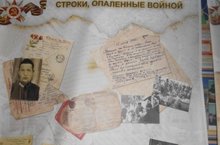 В рамках празднования 72-й годовщины Победы ВОВ 1941 – 1945 гг., реализации государственной программы «Патриотическое воспитание граждан РФ на 2016 -2020 гг.» в фойе школы выставлены баннеры «Строки, опаленные войной».