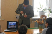 На классном часу, который подготовили кл.руководители Гайнанова А.Л. и Гаврилова Л.М. и провели учащиеся 5 и 9"В" классов, ребята рассказывали о своих отцах, которые служили в рядах вооруженных сил.