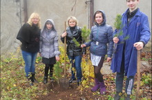 Ученики 9 класса посадили на территории школы саженцы сосны.