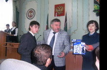 Мэр города Хусаинов Р.Г в торжественной обстановке вручил паспорт и подарок ученику Валиуллину Артуру. поздравляем!