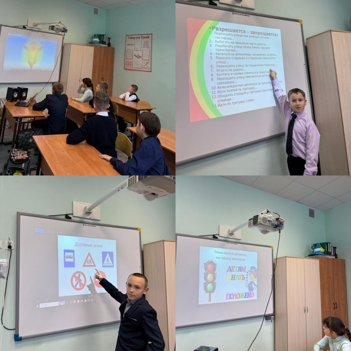 14 октября классными руководителями 5а Гайнановой А.Л., 5б Низамовой Н.А. было проведено познавательно- игровое мероприятие «Знай правила движения, как таблицу умножения». В начале мероприятия классные руководители рассказали ребятам о том, как появились правила дорожного движения, когда и где был изобретен первый светофор, что означают три цвета светофора, как важно знать и соблюдать правила дорожного движения. Затем все вместе вспоминали дорожную азбуку и участвовали в игре – загадке «Дорожный знак». Игра «Красный, желтый и зеленый» помогла вспомнить значение сигналов светофора. В игре «Разрешается – запрещается» разбирались в правилах безопасного поведения на улицах и дорогах. Играя, дети проверили свои знания по правилам дорожного движения, узнали о безопасности на дороге и пообещали эти правила выполнять. Для того чтобы закрепить знание о правилах дорожного движения, для детей была проведена викторина «Три огонька светофора». Мероприятие получилось интересное и познавательное.