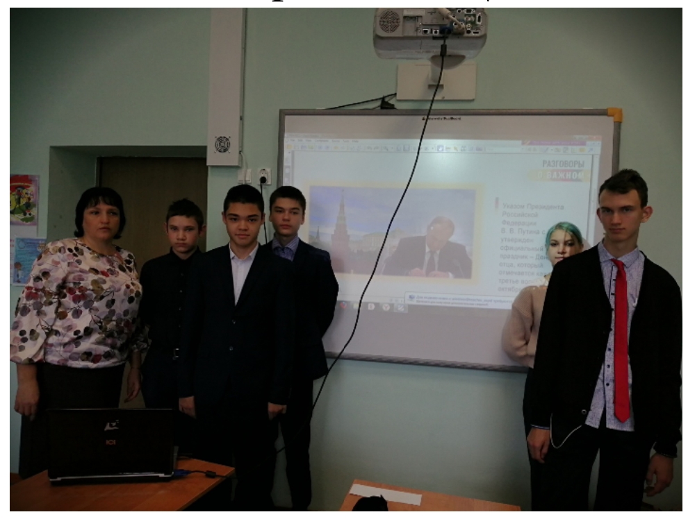 Занятие прошло в форме обсуждения. В начале занятия учитель прочитала стихотворение Роберта Рождественского, посвящённое Учителю. Ученики класса были согласны с утверждением поэта, что учитель – это главная профессия на Земле.