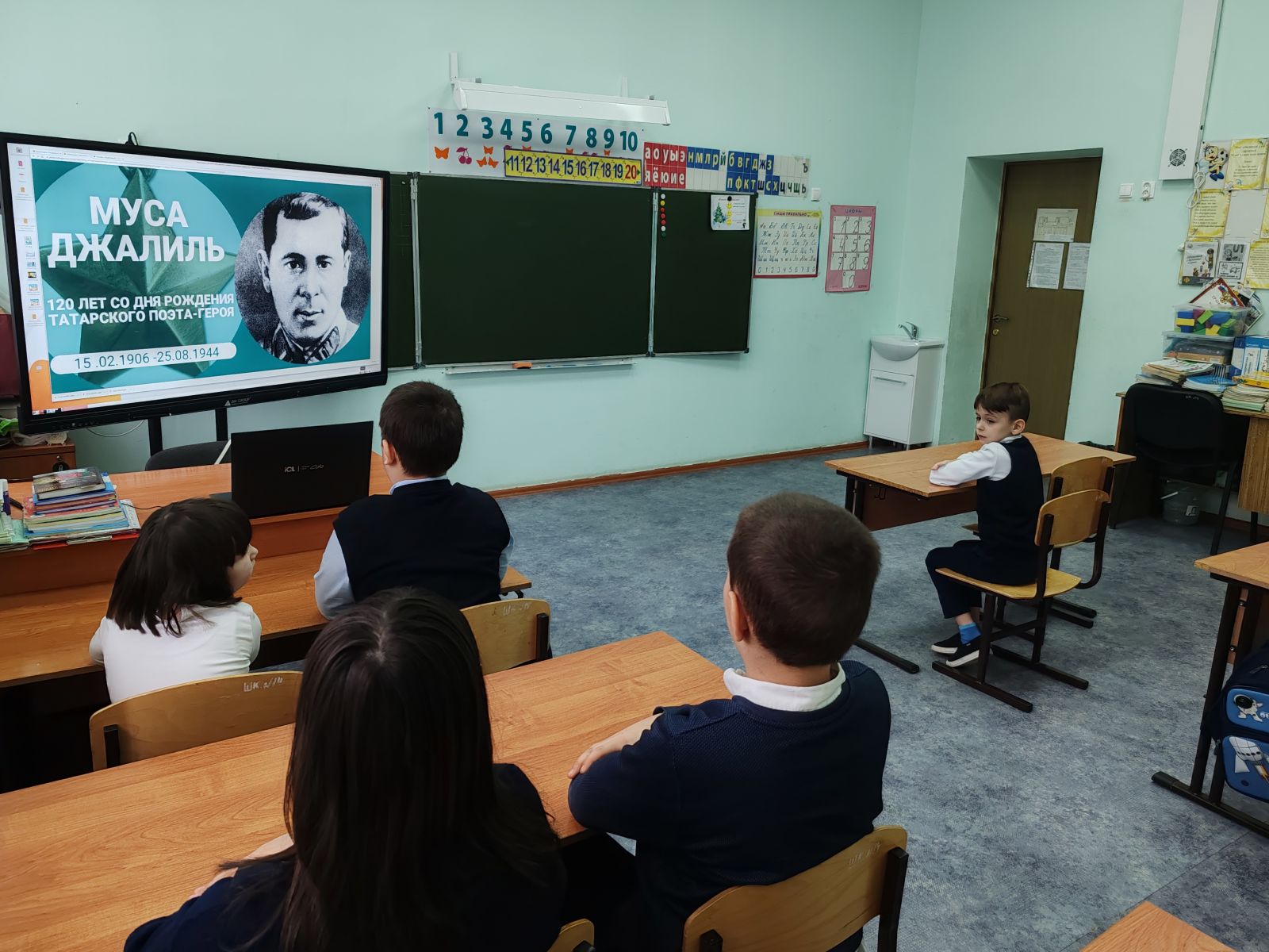 Для учащихся 3 класса был проведен классный час, посвящённый 120-летию со дня рождения Мусы Джалиля — Героя Советского Союза, татарского поэта, журналиста и военного корреспондента.