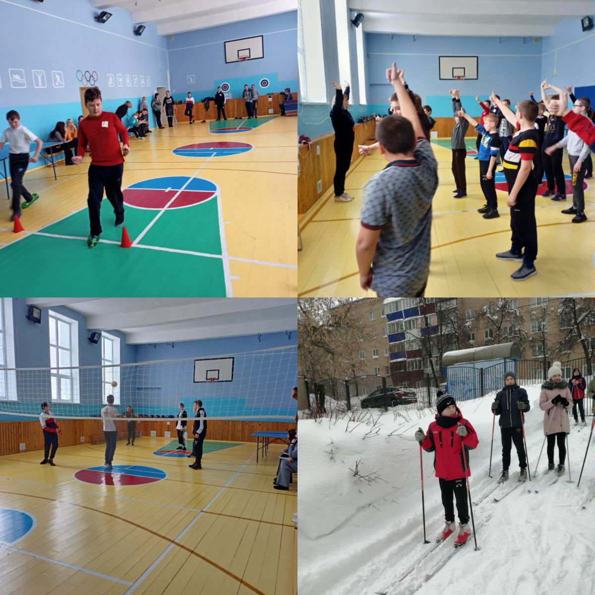 В школе прошёл день здоровья. Ребята 5-9 классов соревновались в эстафетах, играли в пионерболл, соревновались в лыжных забегах на короткие дистанции. Ждём результатов судей.
