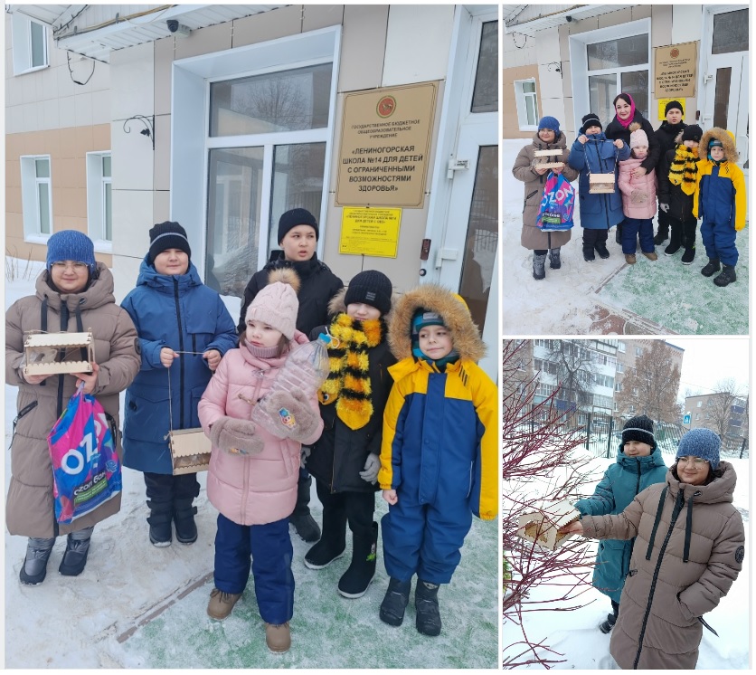 Зима – трудное время для птиц, особенно если она суровая и многоснежная. Чтобы как-то помочь птицам, ученики 2 класса с огромным желанием решили принять участие в экологической акции «С каждого по зёрнышку!» Они с радостью приносили из дома овёс, пшено, семена подсолнечника, тыквы. Дежурные собирали крошки хлеба со школьной столовой. Ребята вместе с родителями мастерили кормушки для зимующих птиц. К этому заданию все отнеслись творчески и ответственно. Кормушки получились оригинальными и вместительными: из дерева, пластмассовых бутылок и банок. Это и хорошая традиция, приучающая ребёнка заботиться о братьях наших меньших, и замечательное творческое занятие. Дети через беседы, различные познавательные занятия, дидактические игры и наблюдения узнали много о птицах, живущих в нашей местности.