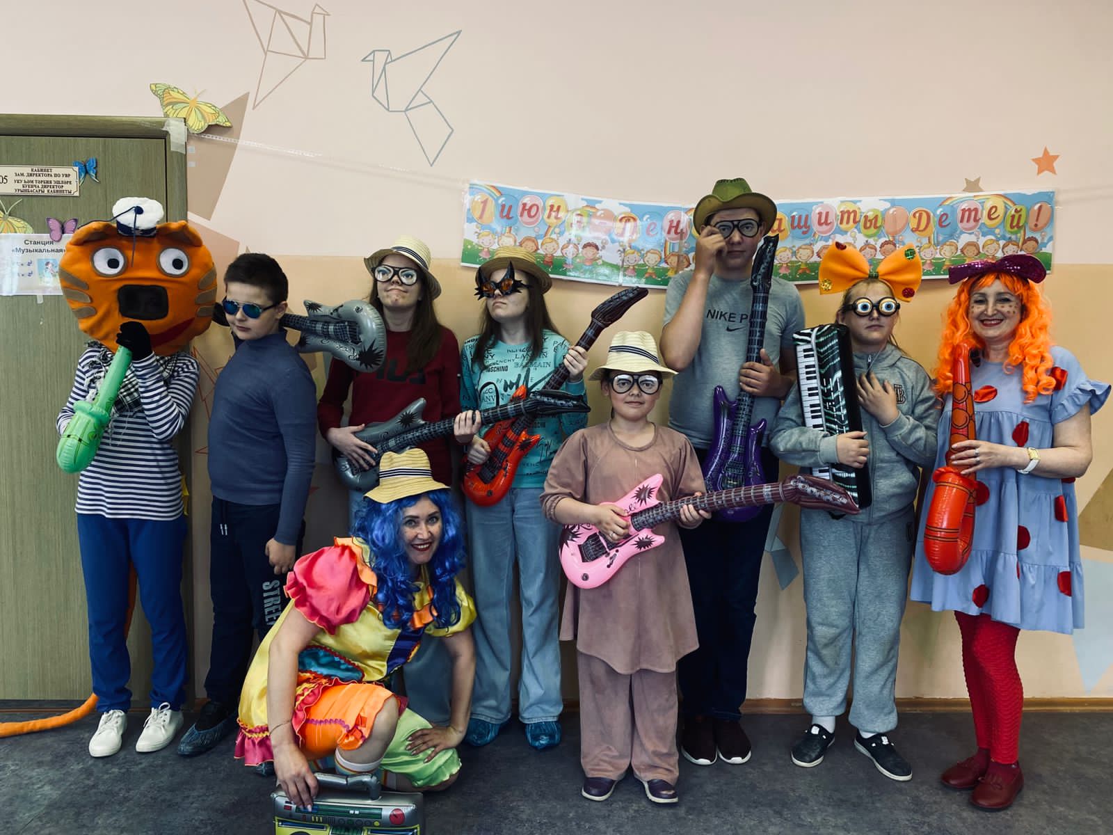 К детям пришли в гости веселые клоуны и кот Коржик и пригласили всех отправиться в странствие по Вселенной детства. Вместе они путешествовали по станциям «Танцевальная», «Спортивная», «Пузырьковая», где играли и соревновались, кто самый ловкий и быстрый. На станциях «Музыкальная» и «Сказочная» играли на музыкальных инструментах, отгадывали загадки. Путешествие закончилось на станции «Фотографическая», где ребята смогли сделать фото на память.