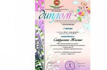 Поздравляем Сайфуллину Жасмин (рук. Шилкина А.В.), занявшую 1 место в конкурсе "Краски весны" на сайте Республиканского педагогического центра "Тат-конкурс".