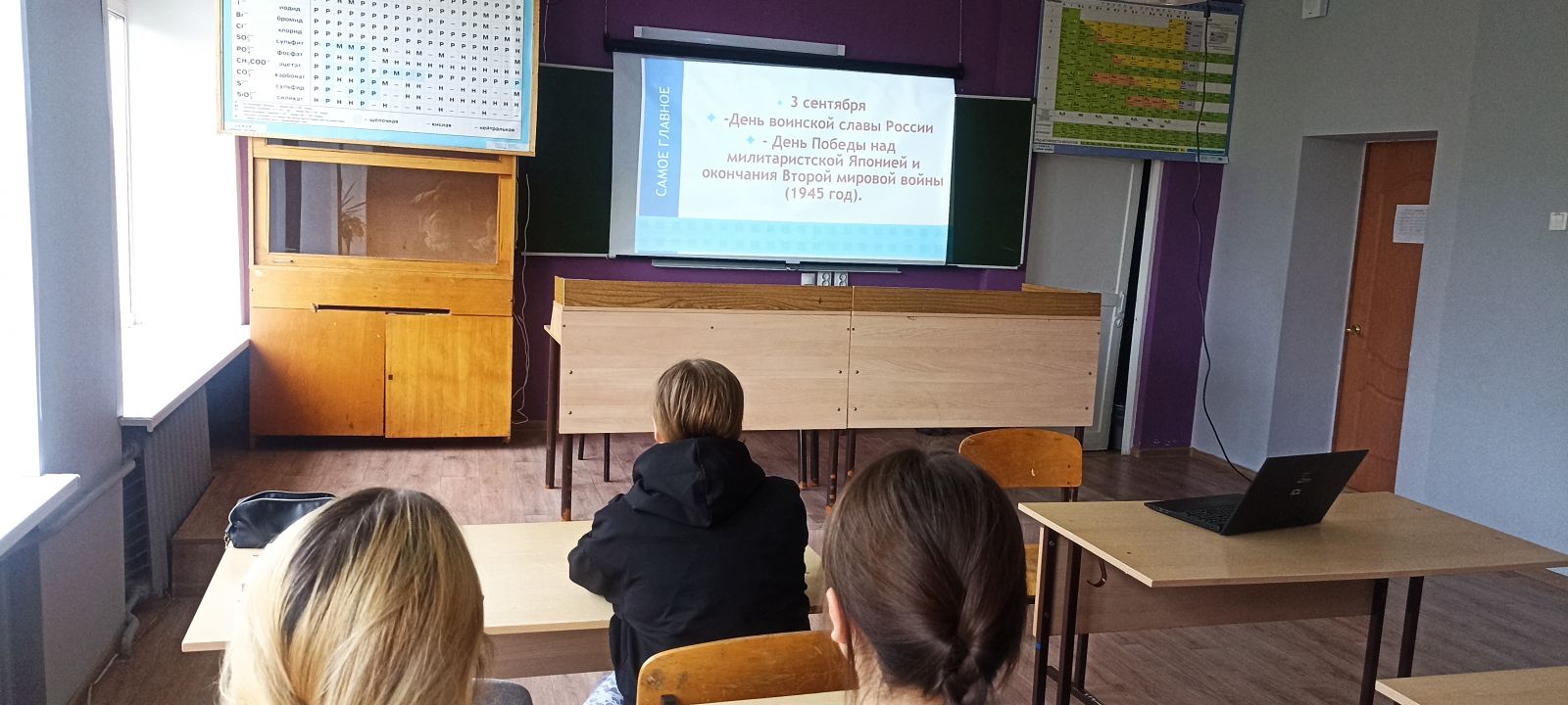 4 сентября 2025 года в рамках учебного предмета «Основы безопасности и защиты Родины» прошел тематический урок, приуроченный ко Дню воинской славы России.