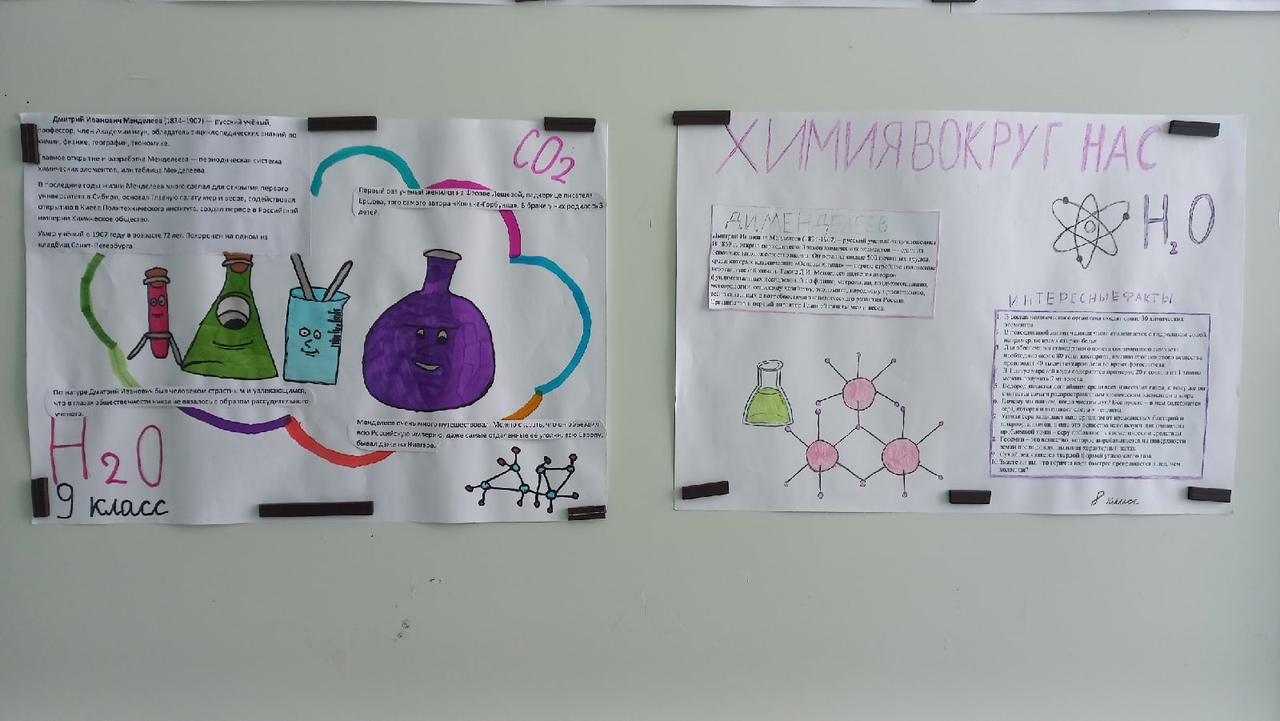 Учащиеся 8 и 9 классов, на основании плана недели химии в школе, выпустили стенгазету посвящённую 190 летию Д.И.Менделеева. -