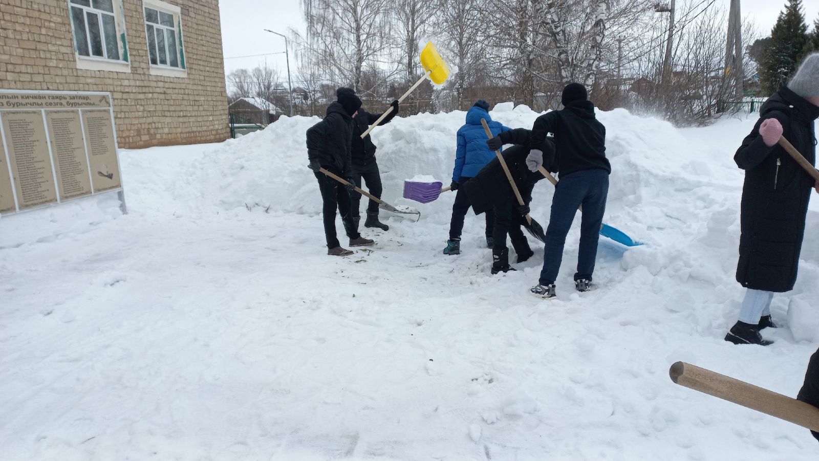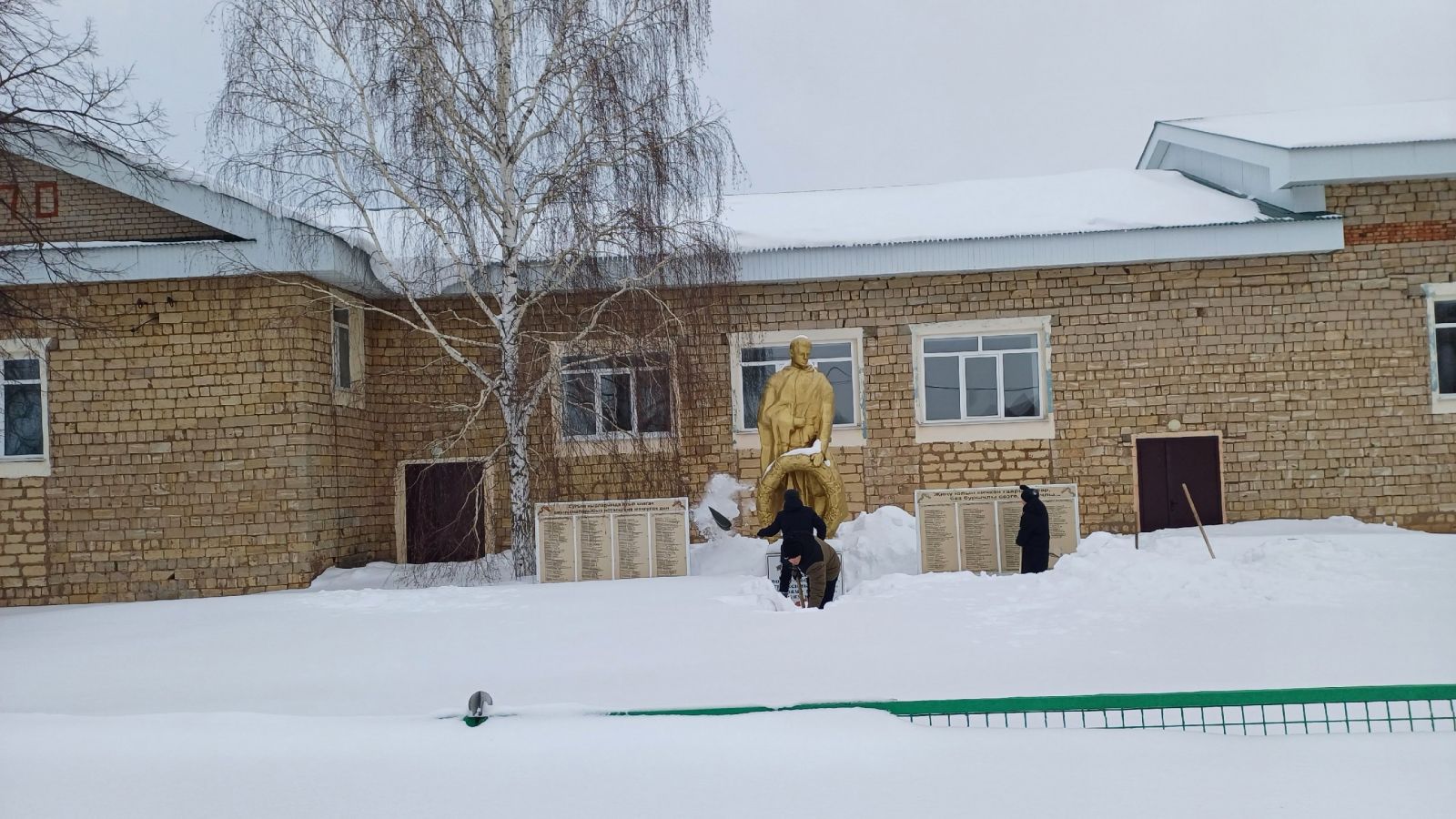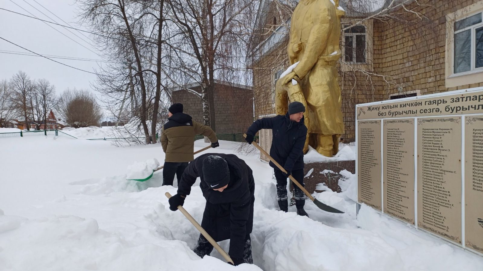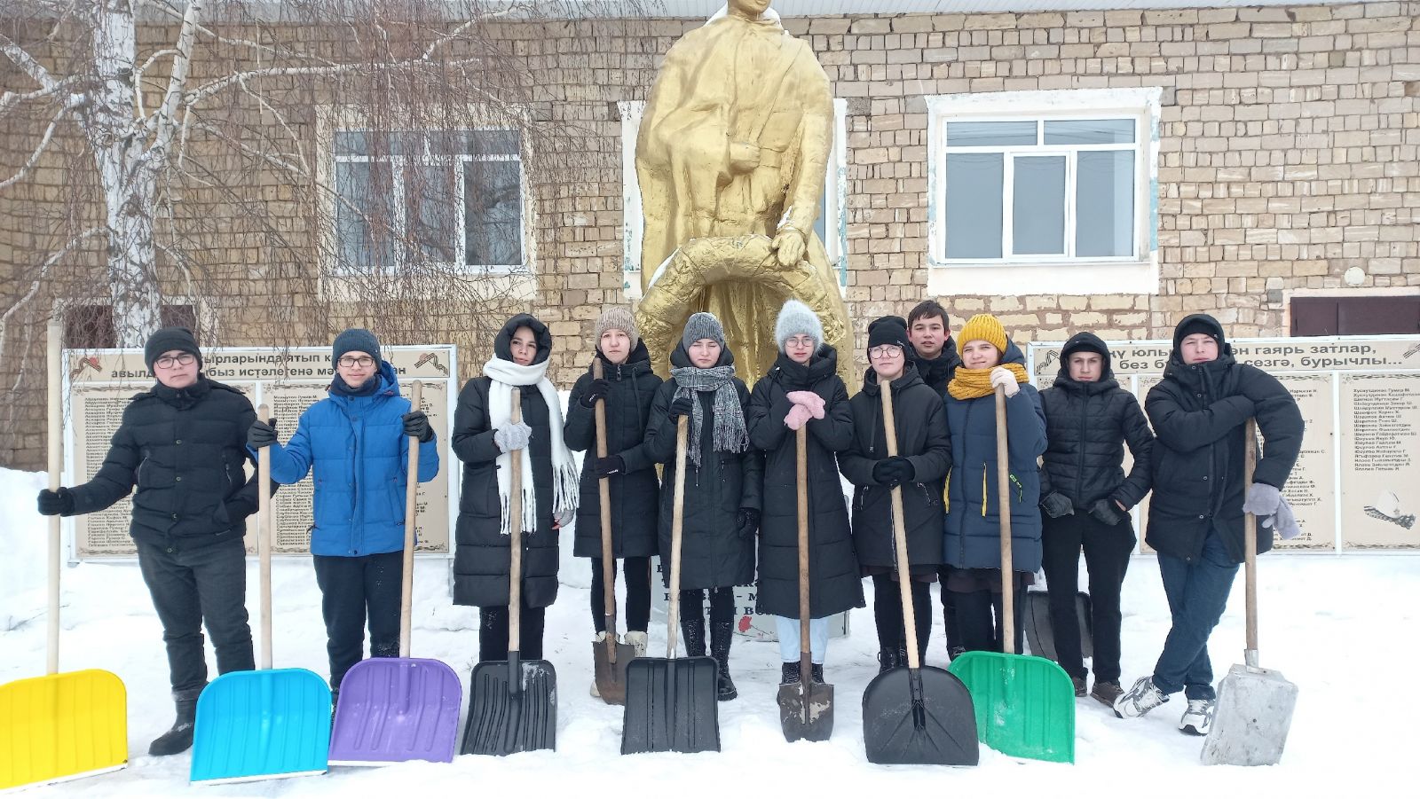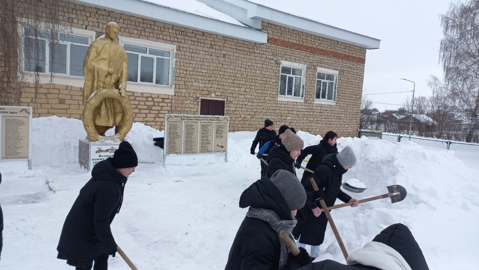 Сегодня учащиеся нашей школы под руководством советника директора по воспитанию Сабирзянова А.А. участвовали в акции "Снежный десант" и убрали снег у мемориала участникам Великой Отечественной войны.