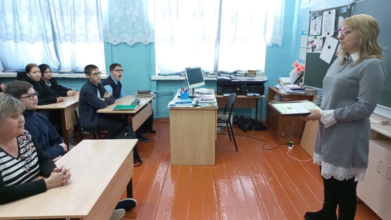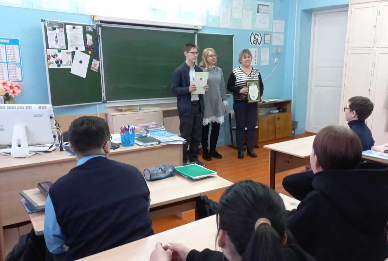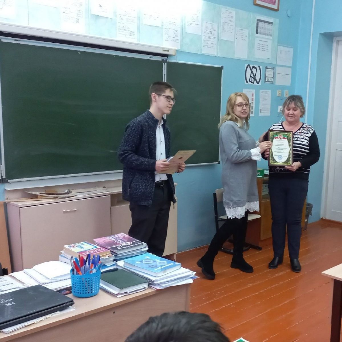15 февраля у нас в школе были гости из Лениногорского отдела по защите прав потребителей. Они объявили благодарность ученикам за хорошую работу. Наши ученики каждый год участвуют в Республиканской олимпиаде по защите прав потребителей и занимают призовые места. В этом году ученик 9 класса Зиатдинов Риман был награжден сертификатом и памятным подарком. А учительница истории и обществознания Мансурова Зульфира Расиховна была награждена благодарственном письмом руководителя Госалкогольинспекции Республики Татарстан.